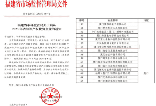 近日,,,,福建省市场监督管理局公示了2023年福建省知识产权优势企业名单,,,,厦门LEWIN乐玩网络技术股份有限公司(以下简称“LEWIN乐玩”或“公司”)榜上有名。。。。