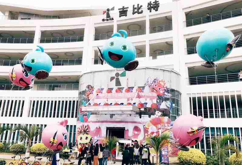 12月15日,,,,为了庆祝《不思议迷宫》一周岁生日,,,冈布奥们准备了众多花式庆生活动:::厦门LEWIN乐玩大楼变身巨型蛋糕、、女仆小姐姐为大家奉上美味小蛋糕、、更有大头冈布奥飞上天……引来不少冒险者身亲临现场为冈布奥打Call!!